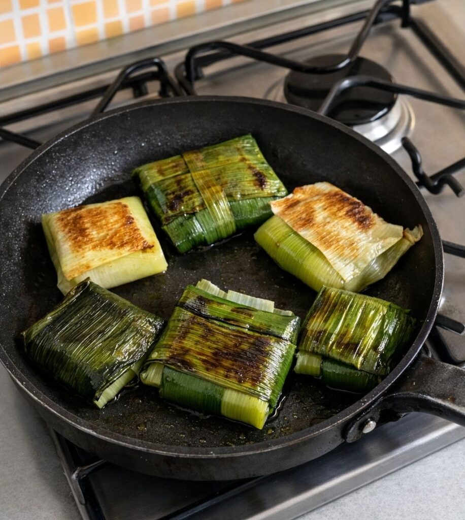 Preparazione: 1. Sbollenta le foglie di porro in acqua salata per 2-3 minuti, giusto per ammorbidirle. Scolale e falle raffreddare. 2. In una ciotola, mescola: riso cotto, carne macinata, olio, sale, pepe (e parmigiano e spezie, se vuoi aggiungerli). 3. Prendi una foglia, metti un cucchiaio di ripieno alla base e arrotola formando un involtino. 4. Sistema gli involtini in una padella con un po’ d’olio e fai rosolare. Prova la ricetta e fammi sapere cosa ne pensi!
