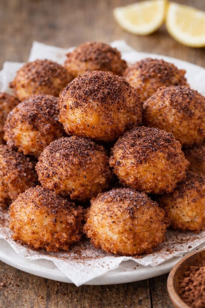 7. Scola su carta assorbente e spolvera leggermente con cacao o cannella.