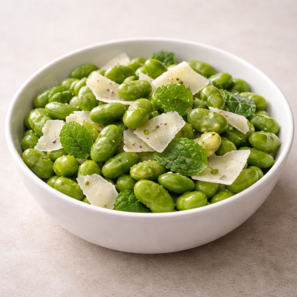 INSALATA FRESCA DI FAVE, PECORINO E MENTA