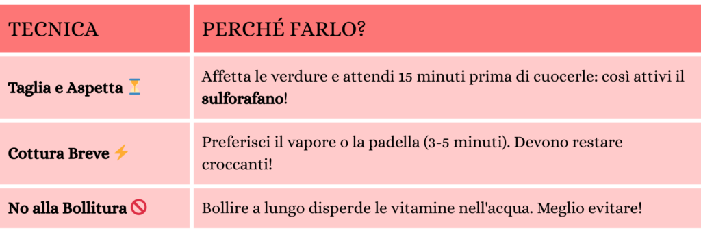 ⚠️ Attenzione al Colon Irritabile: Se ne soffri, limita inizialmente in consumo delle crucifere per poi reintegrarle un po’ alla volta.