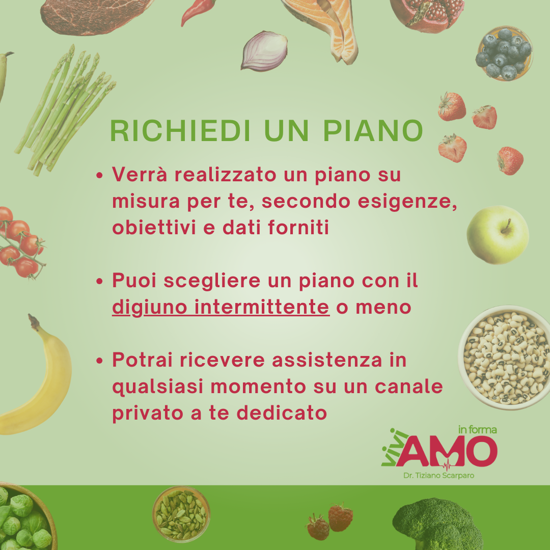 Questo piano alimentare non è un semplice schema generico, ma un percorso studiato su misura per te. Ogni aspetto verrà adattato alle tue esigenze, al tuo stile di vita e ai tuoi obiettivi. Puoi anche scegliere se includere o meno il digiuno intermittente, a seconda delle tue preferenze e necessità.